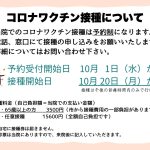 - コロナワクチンに関してのおしらせコロナワクチンに関してのお知らせです。 当院ではコロナワクチンは、予約制になります。 インフルエンザワクチンは… 続きを読む: コロナワクチンに関してのおしらせ