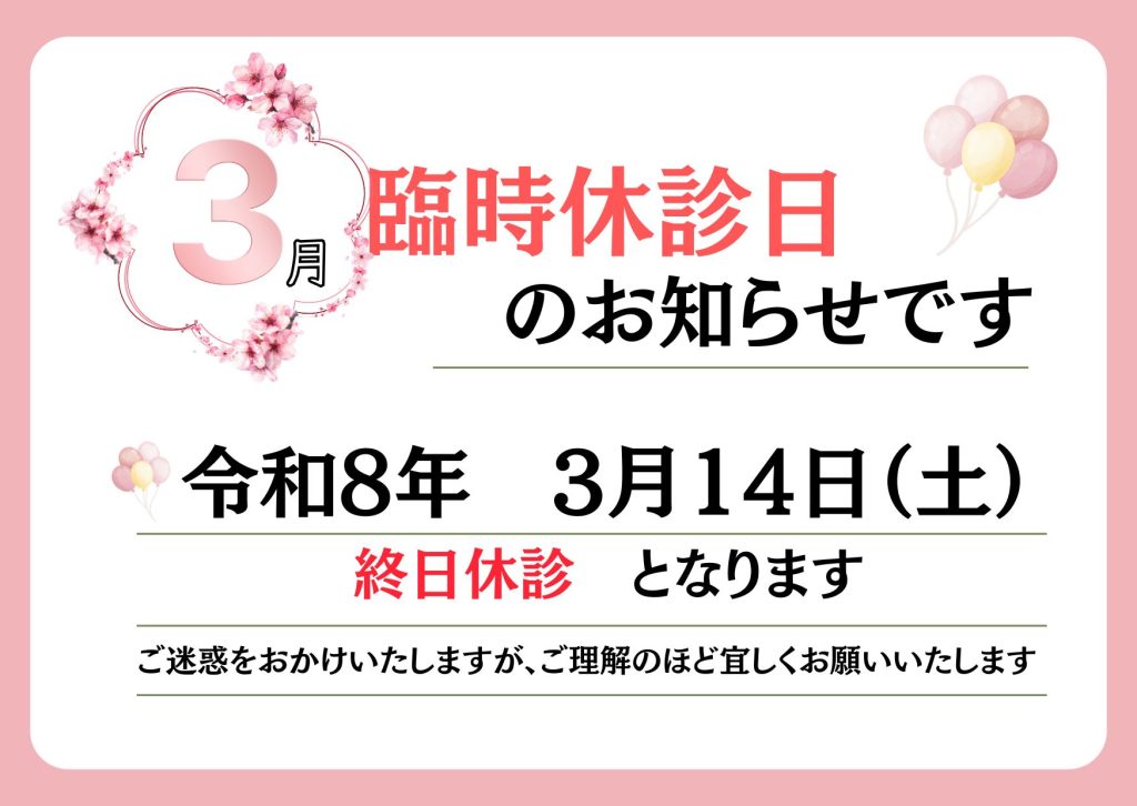 11月の休診のお知らせ 2026年1月23日 最終更新日時 : 2026年1月23日 masafumi akabane 11月の休診のお知らせです。 大変ご迷惑をおかけしますが、ご理解のほどお願いいたします。